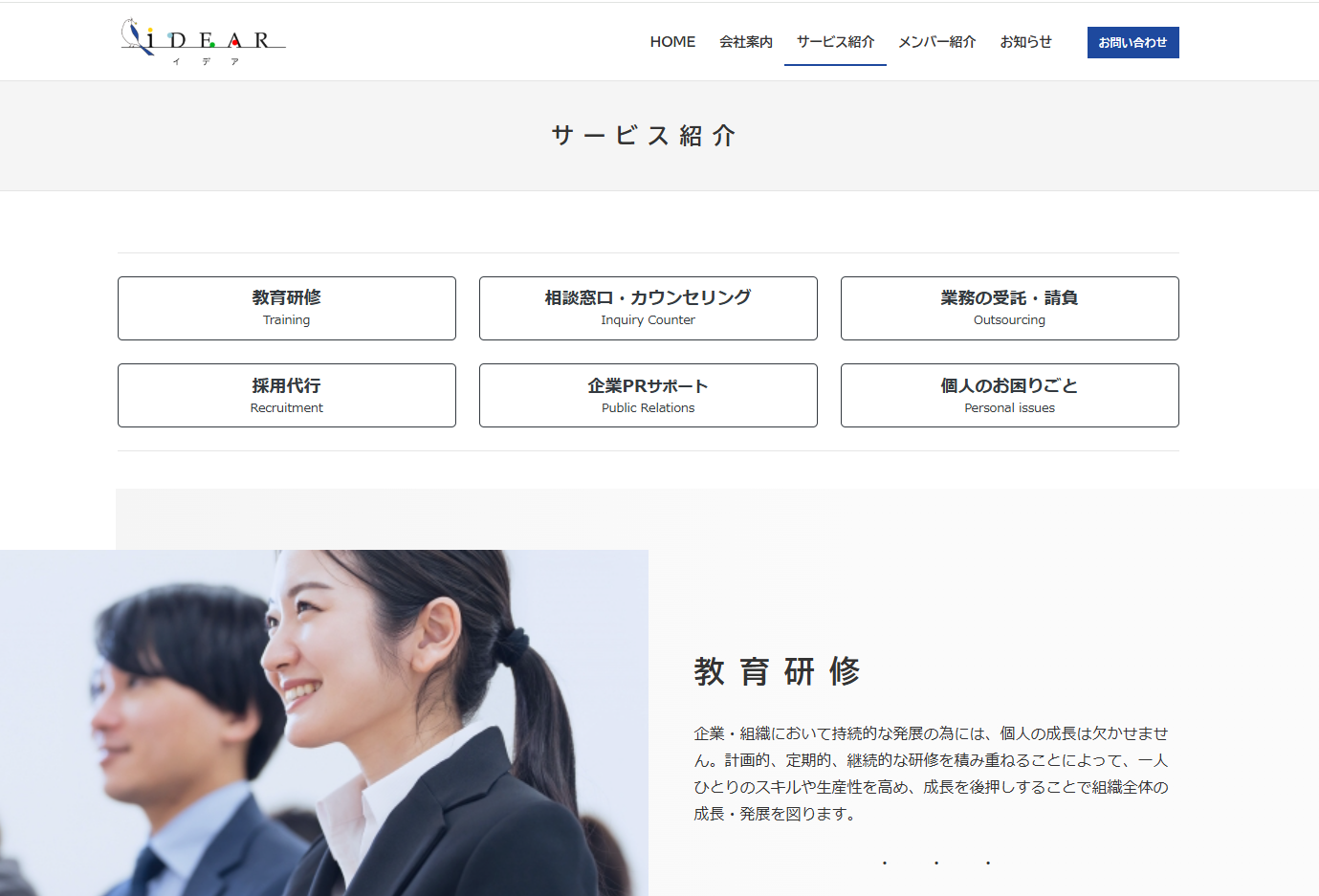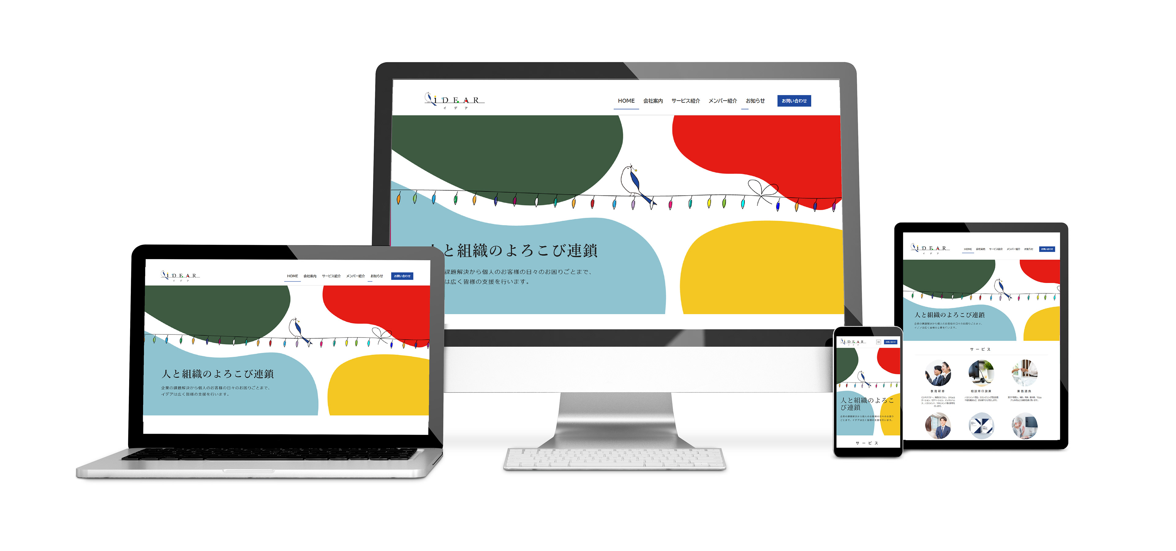 サイト全体はシンプルにまとめ、スマホでも見やすい構成になるよう心がけました。トップページは、設立の際プレゼントさせていただいたデザインアートを気に入っていただき、それをトップのメインビジュアルにも採用しました。